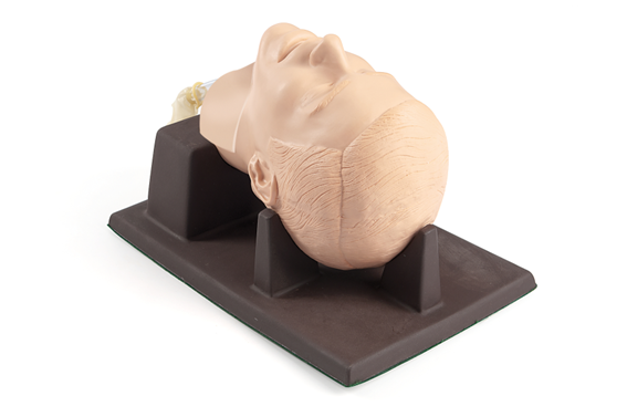 Las habilidades de cricotirotomía quirúrgica y con aguja se pueden practicar en este modelo con tráqueas rígidas y blandas intercambiables.