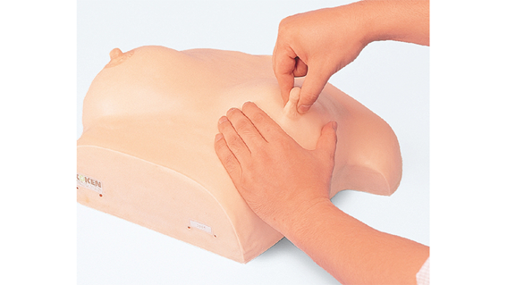 - El modelo representa el pecho apretado de una mujer puérpera e incluye el movimiento de la base de los senos.